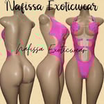 •Dive into summer fun with this electric hot pink 1-piece backless bodysuit that practically a party itself! Covered in tiny, glimmering crystals, this piece makes you feel like a summer goddess glowing within.