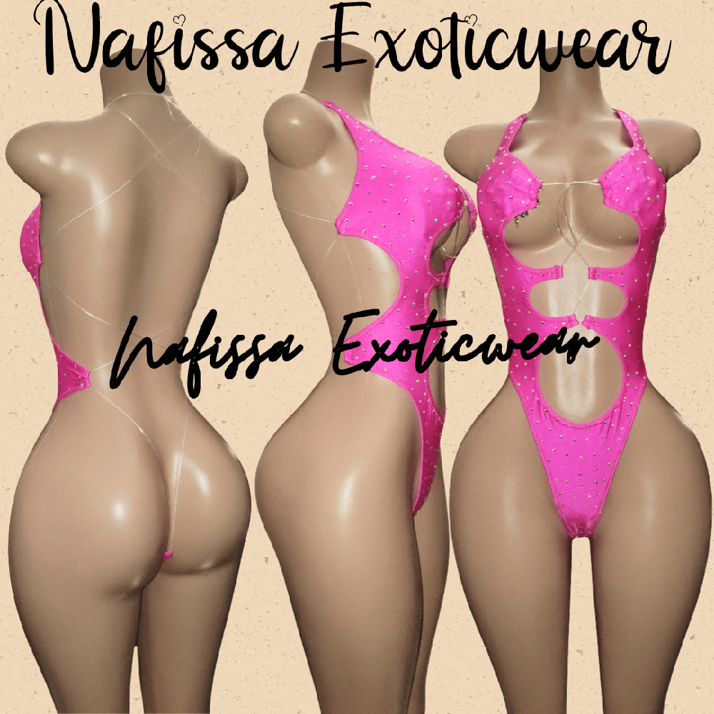 •Make a show-stopping entrance in this dazzling hot pink 1-piece backless bodysuit. Drenched in vibrant crystals that catch the light.