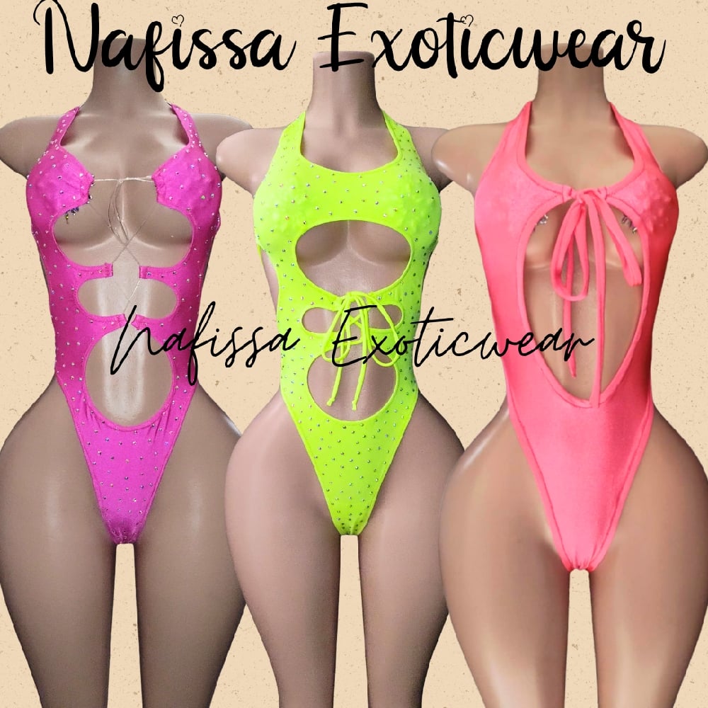 •Light up the night with our crystal neon yellow backless bodysuit. Designed to turn heads, this vibrant, neon yellow 1-piece is embellished with sparkling crystal rhinestones that shimmer under the blacklight and club lighting.