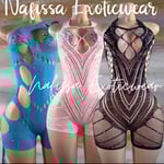 •Blue crystal mesh romper.