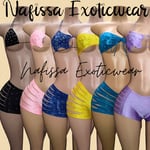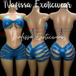 •"Glow up" Turquoise crystal cutoff shorts. This two piece set features a tube top, that can be worn three different ways.