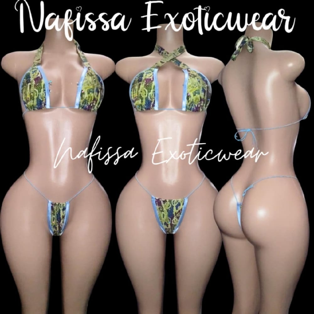 •"Our eye catching 2-piece thong set is an incredible piece to have. This Fendi print material is soft and comfortable.