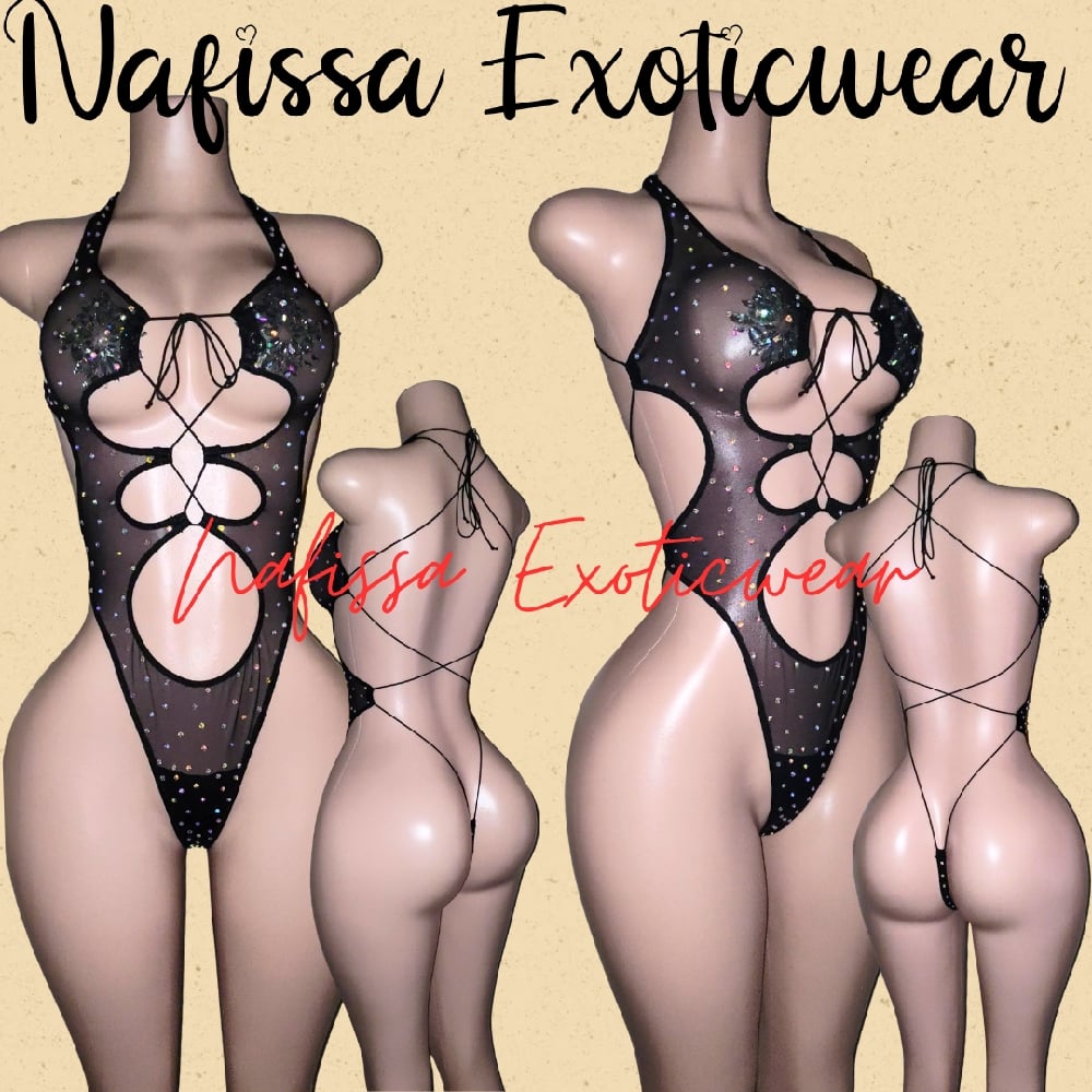 •Make an unforgettable entrance with this crystal backless black mesh bodysuit. This show-stopping 1-piece is crafted from a sheer, breathable mesh fabric that hugs the curves, adorned with shimmering, high-shine rhinestones designed to catch the light from every angle.